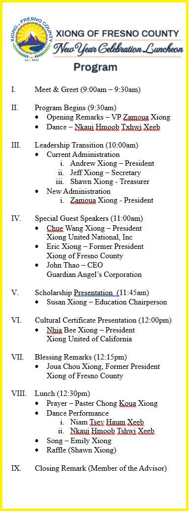 Uncategorized Xiong of Fresno County’s New Year Luncheon admin December 19, 2024 No Comments Leave a Reply Cancel replyYour email address will not be published. Required fields are marked *Comment * Name * Email * Website Save my name, email, and website in this browser for the next time I comment.